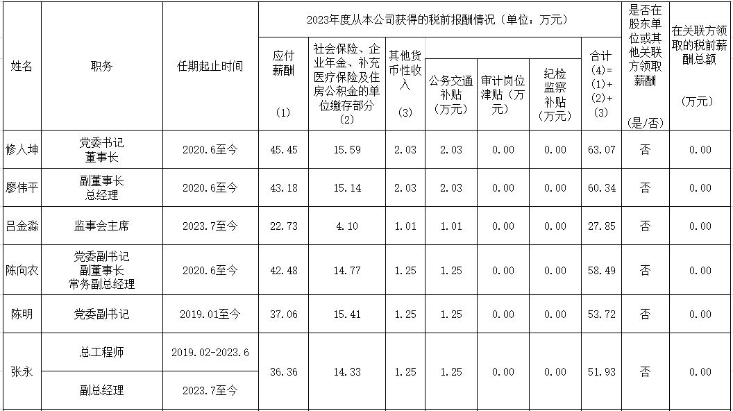 龙岩市国资委监管企业负责人2023年度薪酬信息披露